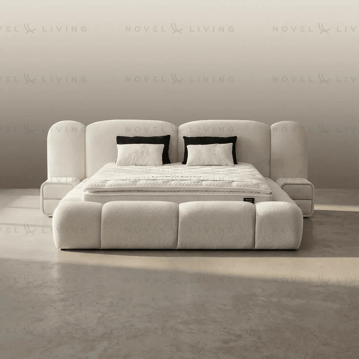 De Bumby boxspring bekleed zachte velvet stof met subtiele textuur geeft het bed een warme en luxe uitstraling, terwijl het royale hoofdbord zorgt voor extra comfort en een stijlvolle blikvanger in de slaapkamer.