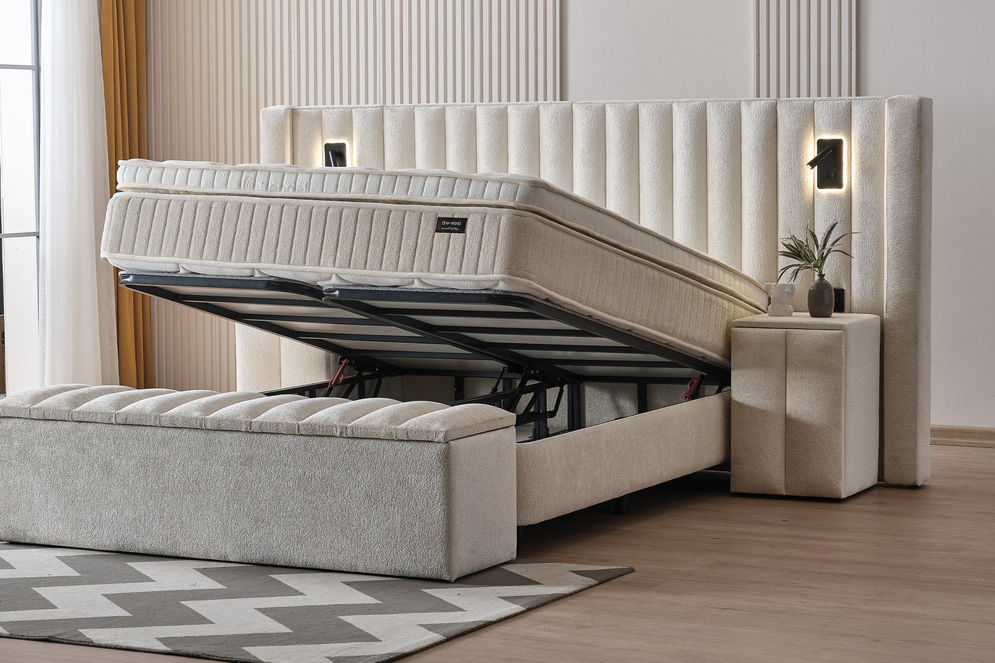 De Florida boxspring is een stijlvolle en comfortabele eyecatcher voor je slaapkamer. Het bed heeft een modern, strak design met subtiele lijnen en een verfijnde afwerking, waardoor hij direct een luxe en serene uitstraling geeft. De zachte bekleding en het royale hoofdbord maken het bed uitnodigend en perfect om heerlijk op te ontspannen.