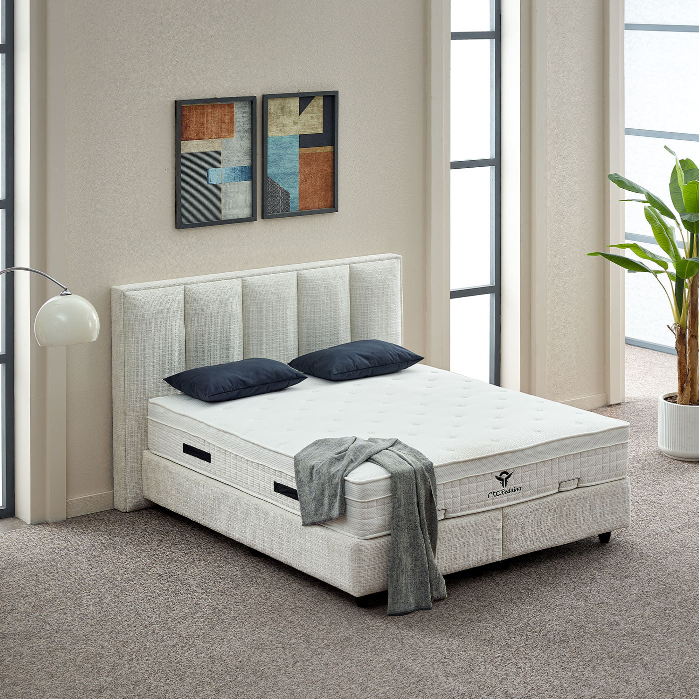 De Lizbon boxspring in Creme is een echte sfeermaker in je slaapkamer. De zachte, doorlopende bollingen in het hoofdbord en frame geven het bed een rustige, organische uitstraling die perfect past binnen de Japandi stijl. De lichte beige kleur zorgt voor een warm en sereen geheel, waardoor je slaapkamer direct een kalme en luxe sfeer krijgt.