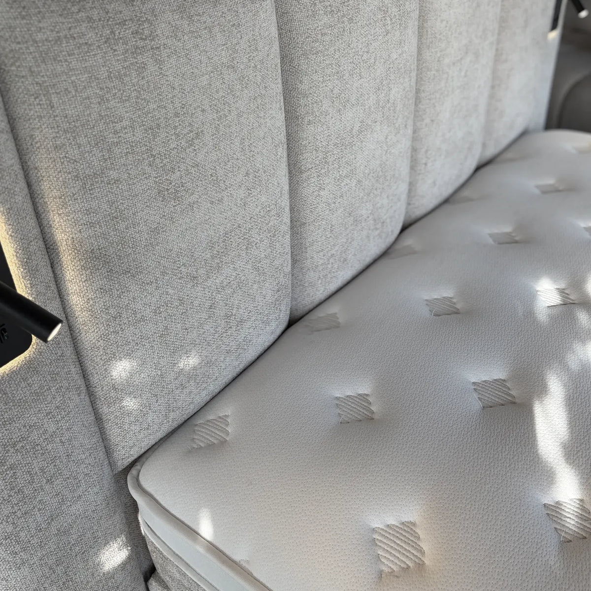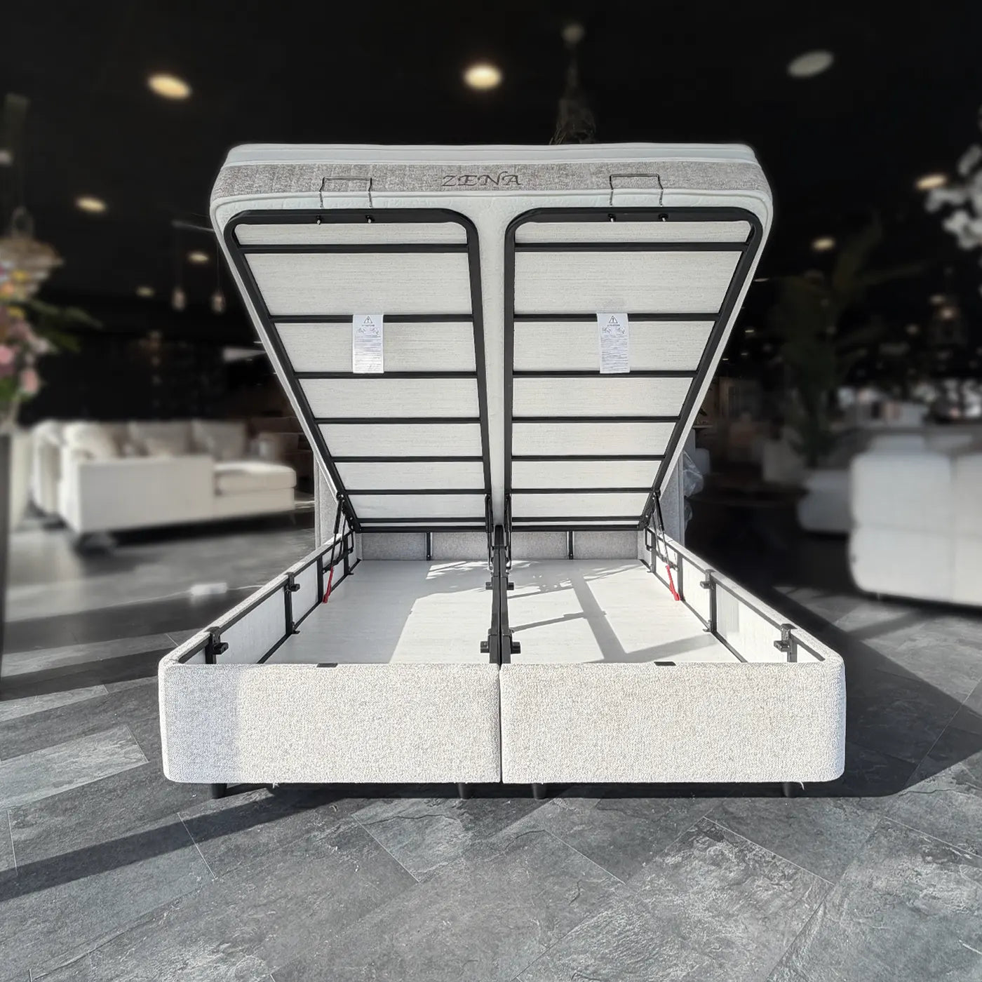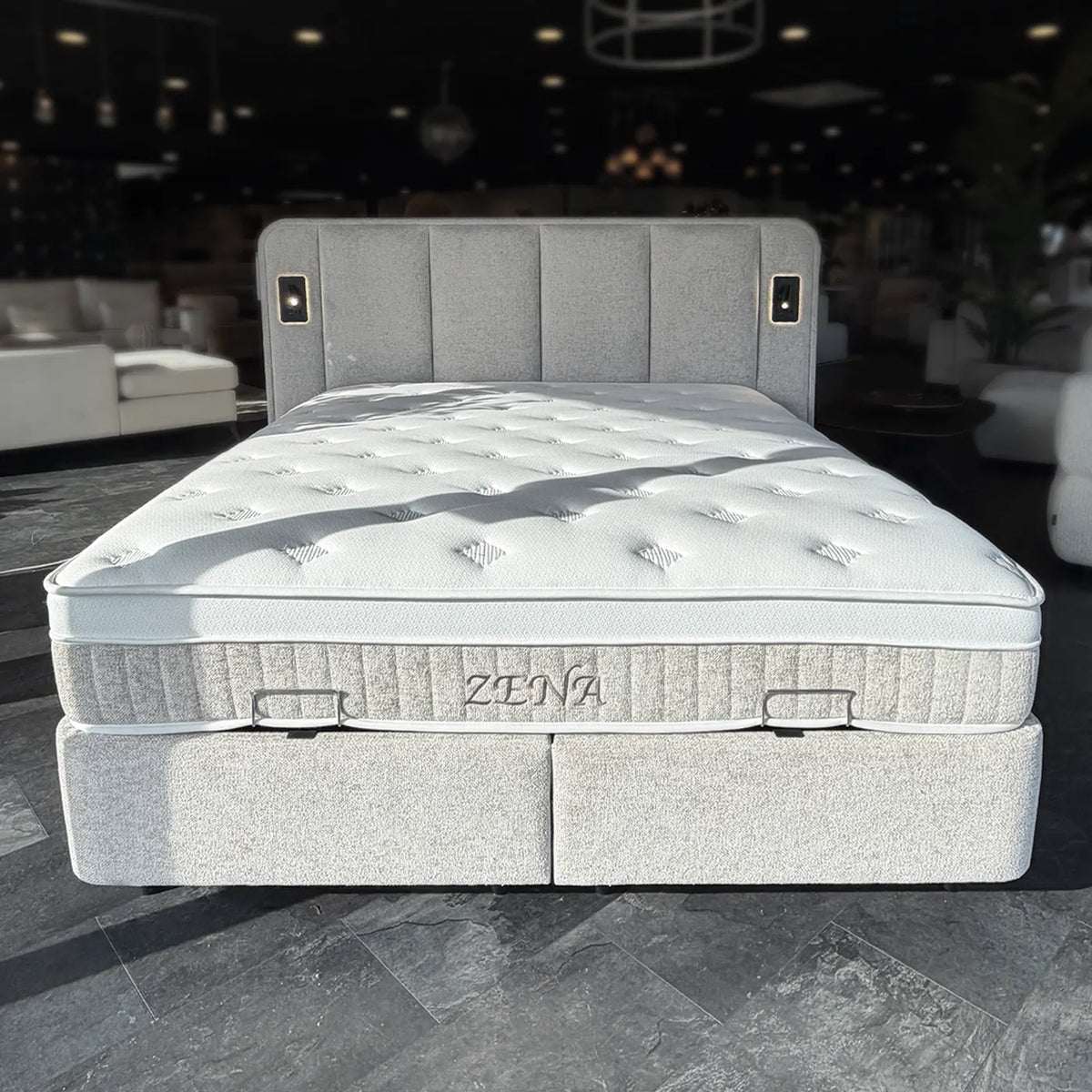 De Lunya boxspring is een echte sfeermaker in je slaapkamer met verlichting. De zachte, doorlopende bollingen in het hoofdbord en frame geven het bed een rustige, organische uitstraling die perfect past binnen de Japandi stijl. De lichte beige kleur zorgt voor een warm en sereen geheel, waardoor je slaapkamer direct een kalme en luxe sfeer krijgt.