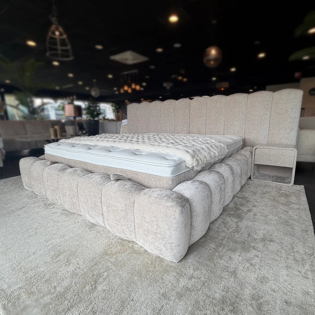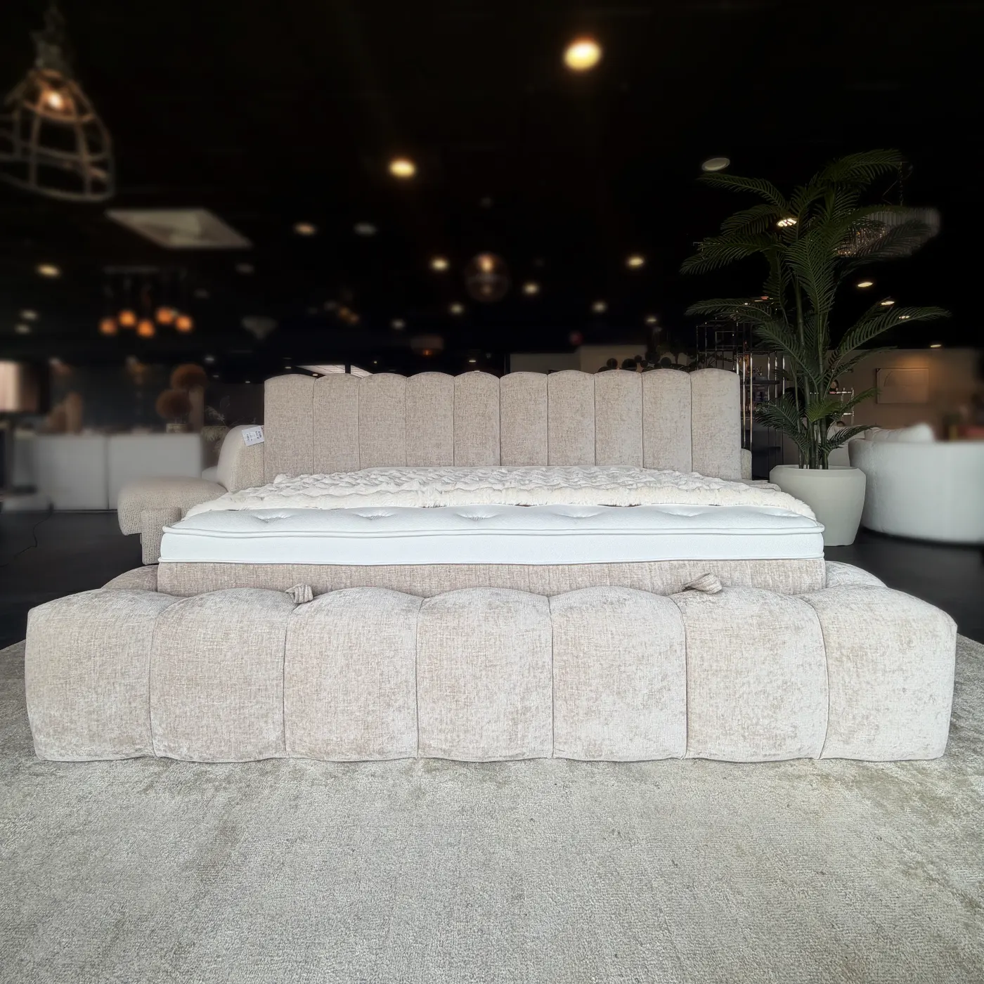 De Rihanna boxspring is een echte sfeermaker in je slaapkamer. De zachte, doorlopende bollingen in het hoofdbord en frame geven het bed een rustige, organische uitstraling die perfect past binnen de Japandi stijl. De lichte beige kleur zorgt voor een warm en sereen geheel, waardoor je slaapkamer direct een kalme en luxe sfeer krijgt.